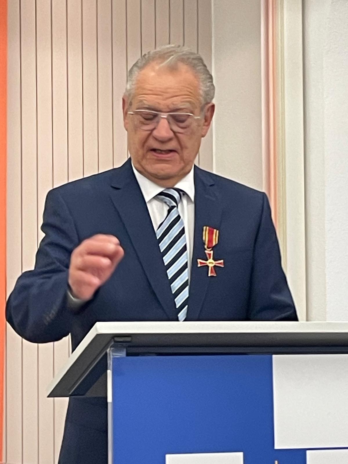 In seiner Dankesrede betonte er, dass die Ehrung nicht nur ihm alleine, sondern auch allen seinen Wegbegleitern, Mitstreitern und Unterstützern gebühre. „Mein Engagement war für mich nie Pflicht, meine Tätigkeiten haben mir immer Freude bereitet“, so Gottfried Schätzle. Er dankte allen, die dazu beigetragen haben, dass er diese besondere Auszeichnung erhalten habe.