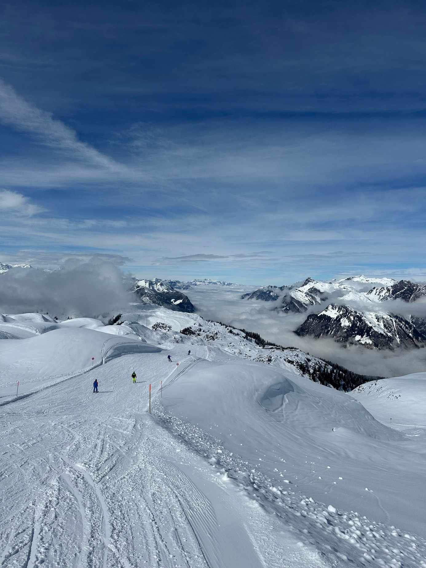 Die Pisten im wunderschönen österreichischen Klostertal erlaubten Schwünge wie die Profis. Nach einem traditionellem Kaiserschmarrn, einem Almdudler im alpinen Sonnenschein und zwei bis drei Bildern für die Männer zuhause, wurde die Gondel voller Vorfreude ins Tal genommen. Denn dort wartete das Party-Team schon mit einem Aperol und einem Buffet voller Leckereien auf unsere Mädels. Von den Teilnehmern mitgebrachte Pizzaschnecken, Salami-Sticks und Dips aus dem Thermi lassen jedes hungrige Après-Ski Herz höherschlagen. Zum Abschluss gings noch eine Runde Tanzen in die Kelo Bar, bevor die Partystimmung in den Bus verlagert wurde und wir den Heimweg antraten.