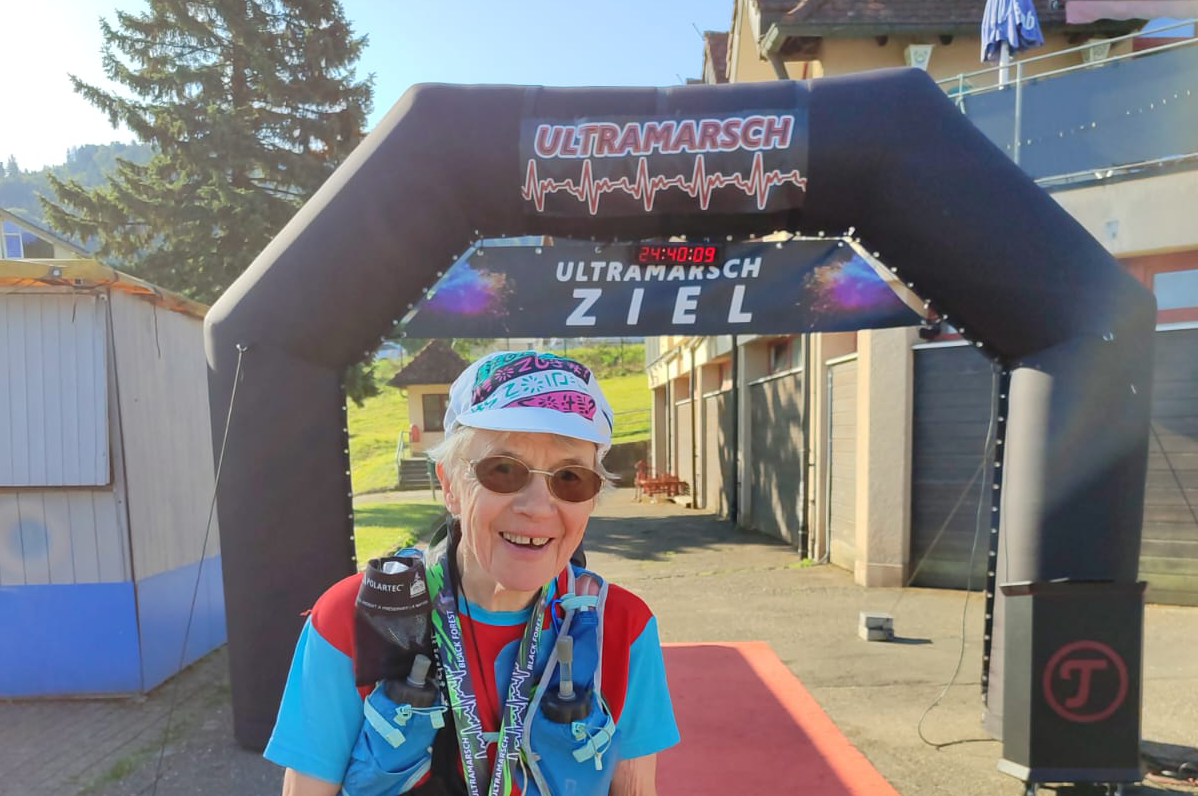 Beim Black Forest Ultramarsch in Gutach im Elztal am 12. und 13. Juli 2025 hat Monika Dewald mit großem Erfolg teilgenommen. Die 81-jährige PSV-Triathletin wanderte 100 Kilometer in 24 Stunden und 48 Minuten. Insgesamt hat sie 4.000 Höhenmeter überwunden und landete am Schluss auf Platz 79 von 130 Teilnehmerinnen und Teilnehmern, die das Ziel überhaupt erreichten. Die Vorgabe war, das Zeitlimit von 27 Stunden einzuhalten. „Ich hatte mir die Strecke im Voraus angesehen und danach entschieden, dass ich das niemals laufen werde“, erzählt sie im Nachhinein, „aber durch meine Urlaube in Südtirol sowie beim Montafonmarathon hatte ich gute Höhenakklimatisation“.