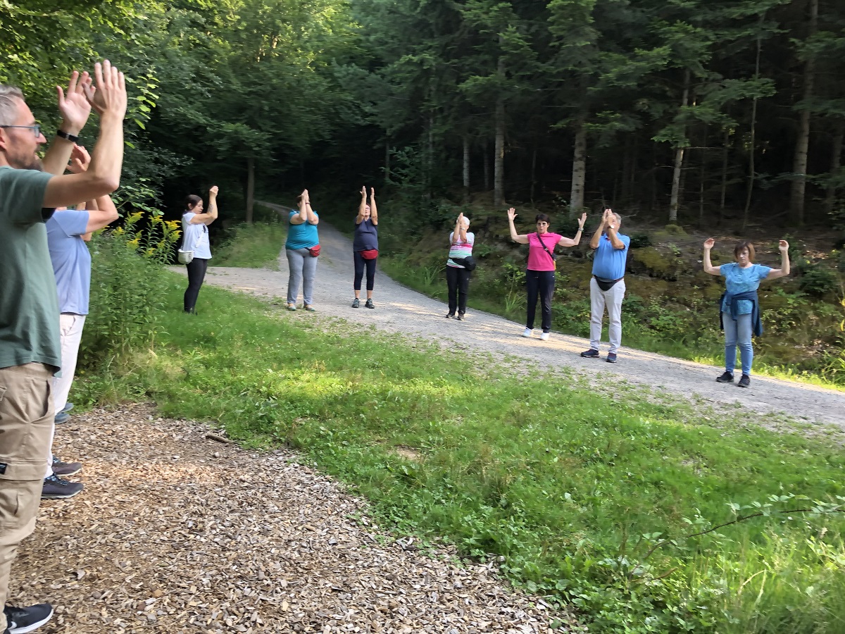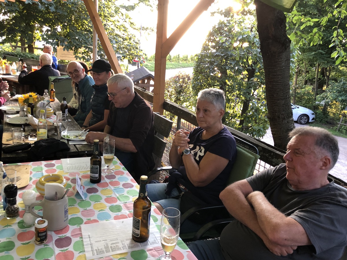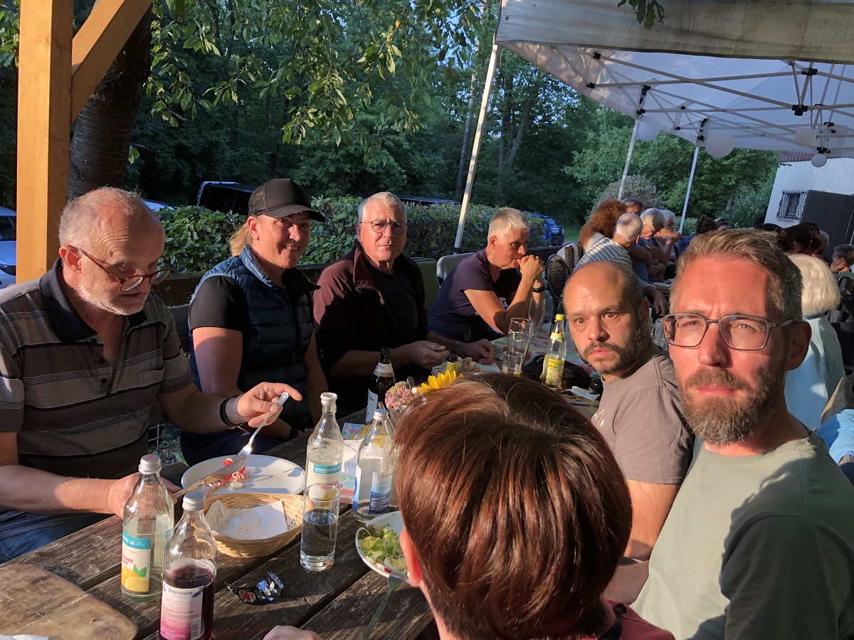 Traditionell trafen sich die Sportlerinnen und Sportler aus den drei Mittwoch-Pilates-Gruppen im Zeller Wald bei der Wolfsgrube. Der sportliche Teil war eine Runde auf dem Trimm-Dich-Pfad mit einigen Stopps für Pilates Übungen im Stehen. Den anschließenden geselligen Teil genossen wir auf der Terrasse der Wolfsgrube. Bei herrlichem Wetter, grandioser Aussicht ins Rheintal, toller Stimmung und Unterhaltung klang der Abend bei einem schmackhaften Vesper aus.