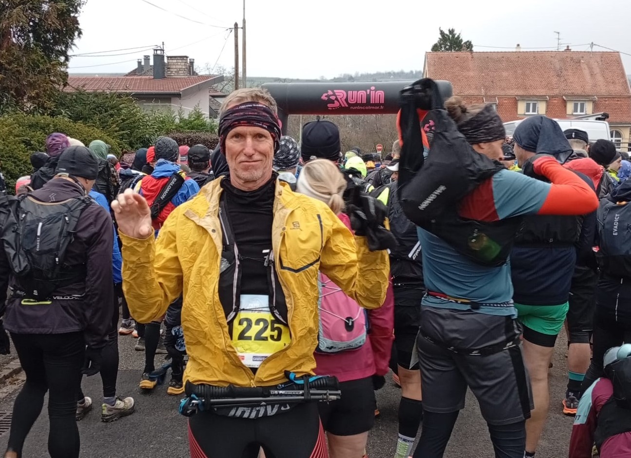 In Frankreich wird die Teilnahme an Trails mehr als sonstwo gelebt. U.a. bieten die Vogesen dafür eine vielfältige Auswahl von Strecken. Und die angebotenen Veranstaltungen sind zahlreich und ganzjährig. Eine der größeren ist der Trail du Petit Ballon, der am Veranstaltungstag, am 16.03.25 gleich vier verschiedene Strecken zwischen 12 und 52 km bietet. Reiner startete auf der langen Strecke mit 2200 Höhenmetern. Dabei beginnt die Strecke in Rouffach auf einer Höhe von 200 Metern und erreicht am Gipfel 1300 Metern.
